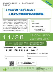 11月28日 北大阪・豊中総合法律事務所共催セミナー 「このままで食べ続けられるの?これからの食糧事情と農業政策」